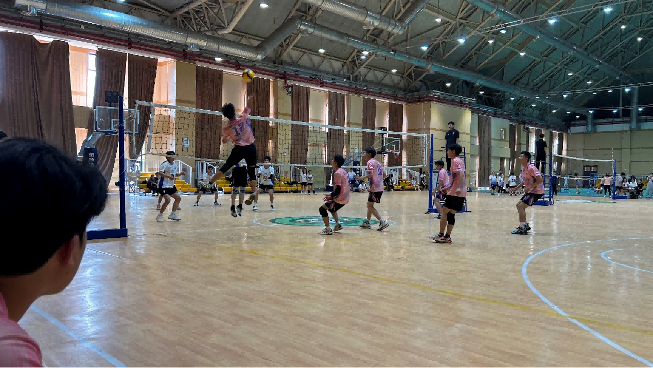5月7日下午四点,紧张激烈的决赛在室内排球场打响。