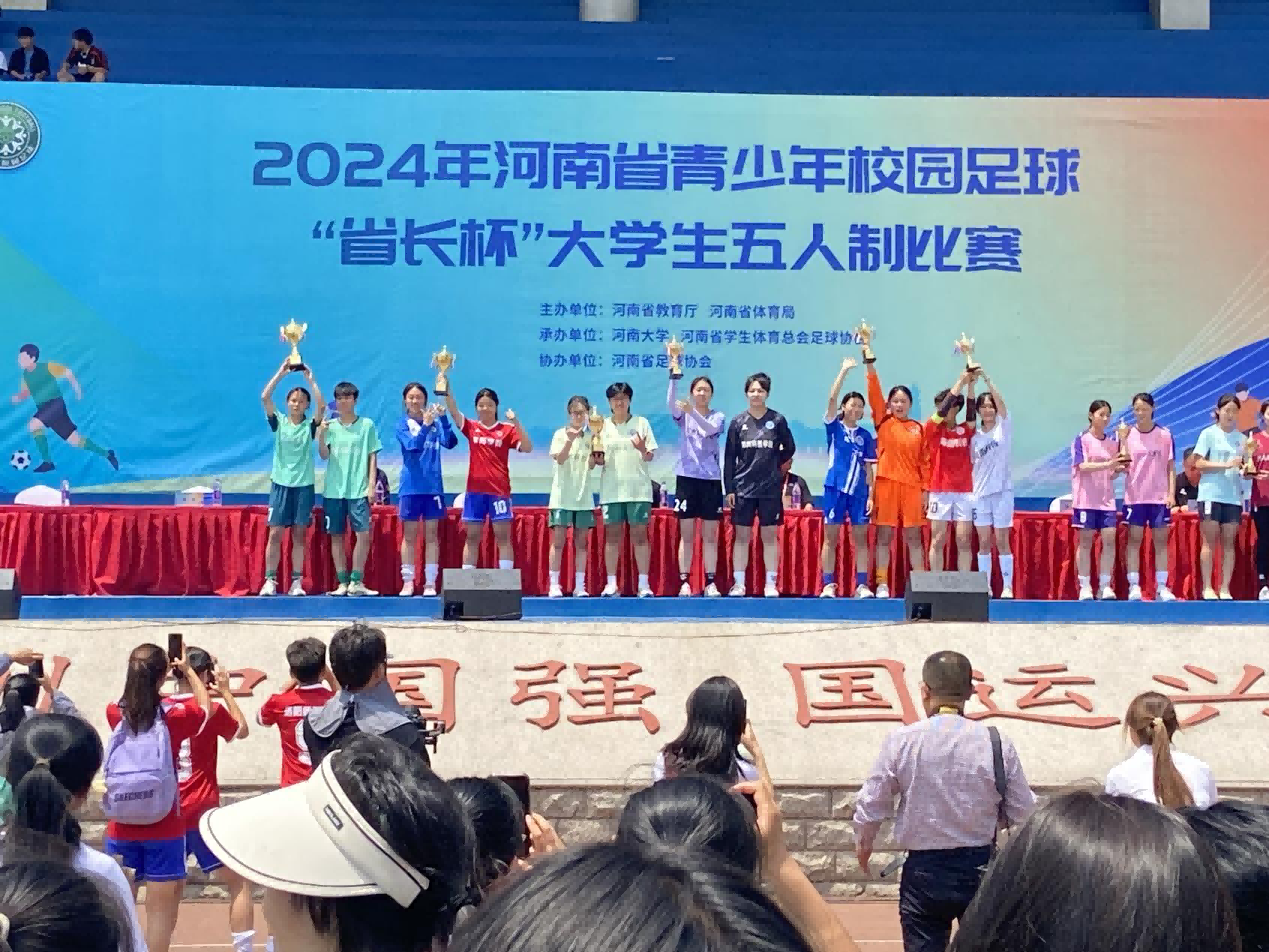 本网讯(通讯员 陈政良)近日,2024年河南省青少年校园足球“省长杯”大学生五人制比赛在河南大学举办,来自全省高校的96支队伍,一千余名运动员们共赴盛会展开角逐,是河南高校校园足球历年来规模最大的一次赛事。我校派出的女子足球代表队由和光磊、许来盛、陈政良三位教师组成教练组,最终在激烈艰苦的比赛中一路披荆斩棘荣获女子乙组冠军!同时也创造了我校女足历史最佳成绩,让全省的高校看到了农大女足姑娘们的拼搏精神!同时,学校男子甲组代表队获得二等奖,男子乙组代表队获得体育道德风尚奖。