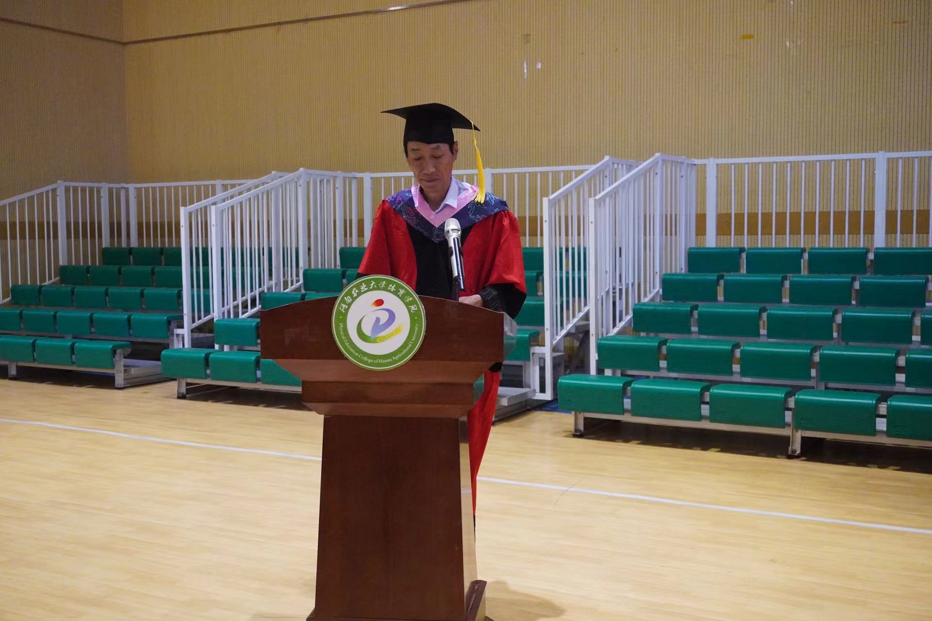 和辛勤的老师表达诚挚的感谢和崇高的敬意。教师代表、公共体育部主任袁静作为教师代表发言,为全体毕业生送上深深的祝福,寄语毕业生砥砺奋斗、勇毅前行。